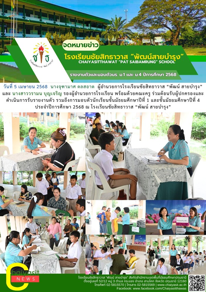 รายงานตัวและมอบตัวนักเรียนชั้นมัธยมศึกษาปีที่ 1 และ มัธยมศึกษาปีที่ 4 ประจำปีการศึกษา 2568