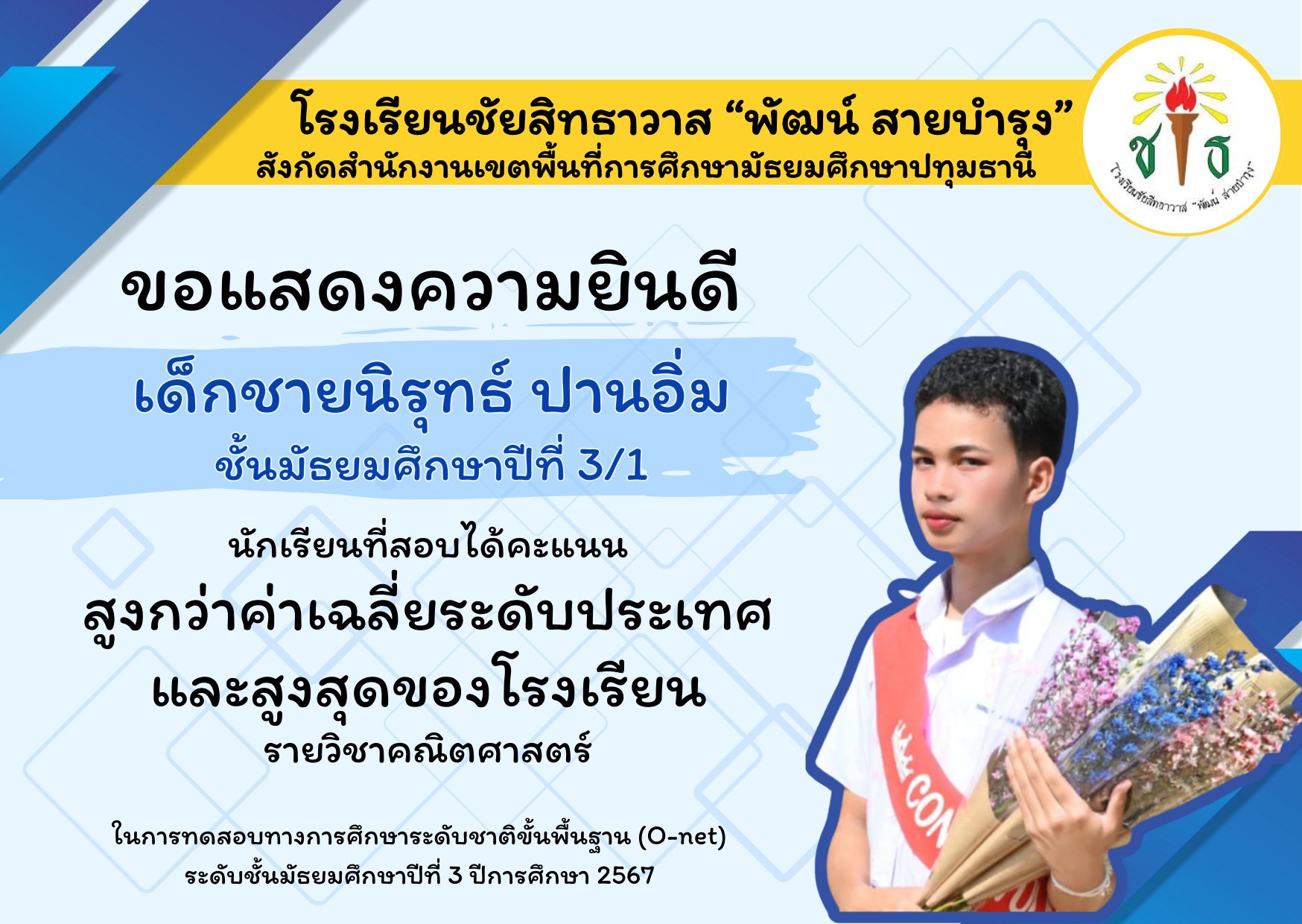 ขอแสดงความยินดีและชื่นชมกับนักเรียนม. 3 ทีี่สอบ O-NET